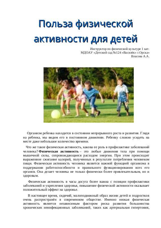 Конс. Для Родит.Польза Физ. Активности Для Детей