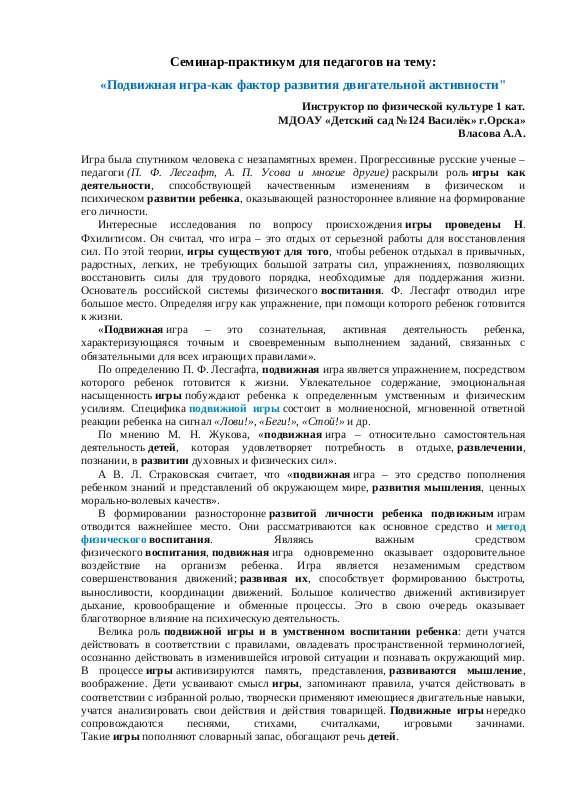Семинар Для Пед. Подвижная Игра 2025 Г Для Педагогов