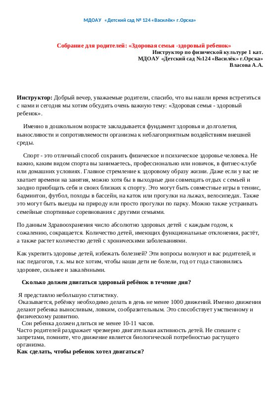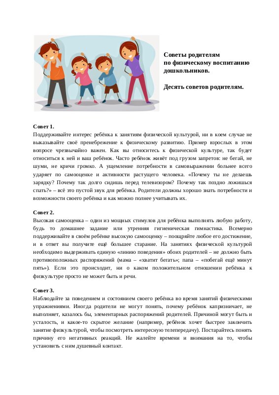 Советы Родителям По Физическому Воспитанию Дошкольников