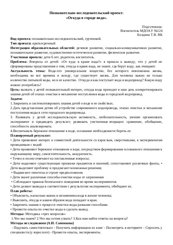 Проект "Откуда в городе вода"
